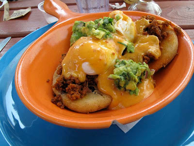 I tried the Mole ‘n Eggs which comprises of eggs that were poached to perfection (a slight stab with the fork gets the yolk bleeding) in mole sauce with shredded beef and pickled cactus salad that ended up being a bit too sour for me to adjust. As a whole it was a pleasurable mixture of gooey, chewy and crunchy sour that when accompanied by crispy chalupas makes for a colorful and tasty combo.