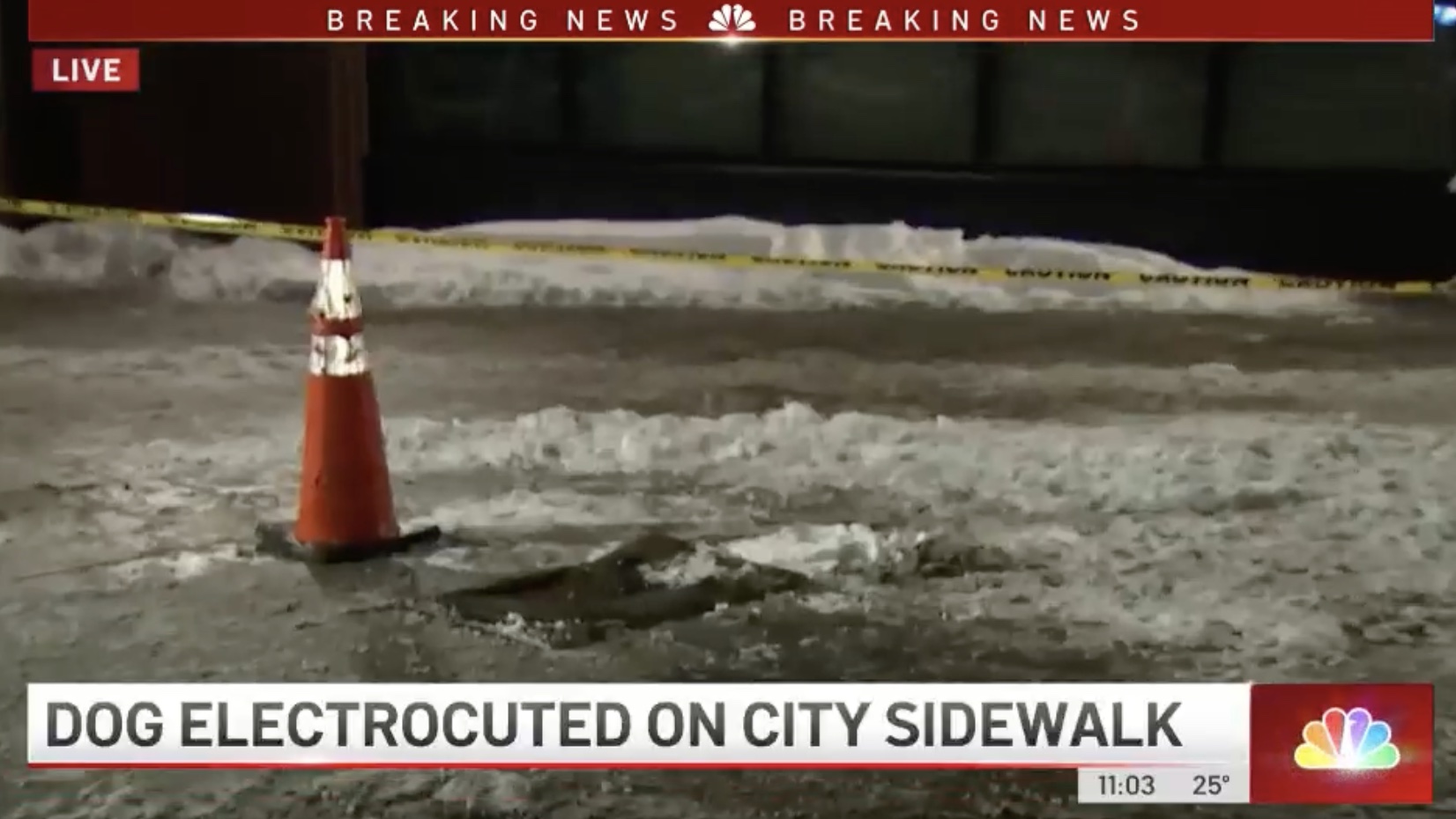 CBS2 in New York reports that “[a]n area of Greenpoint was blocked off after stray voltage struck someone walking their dog on a grate.”
