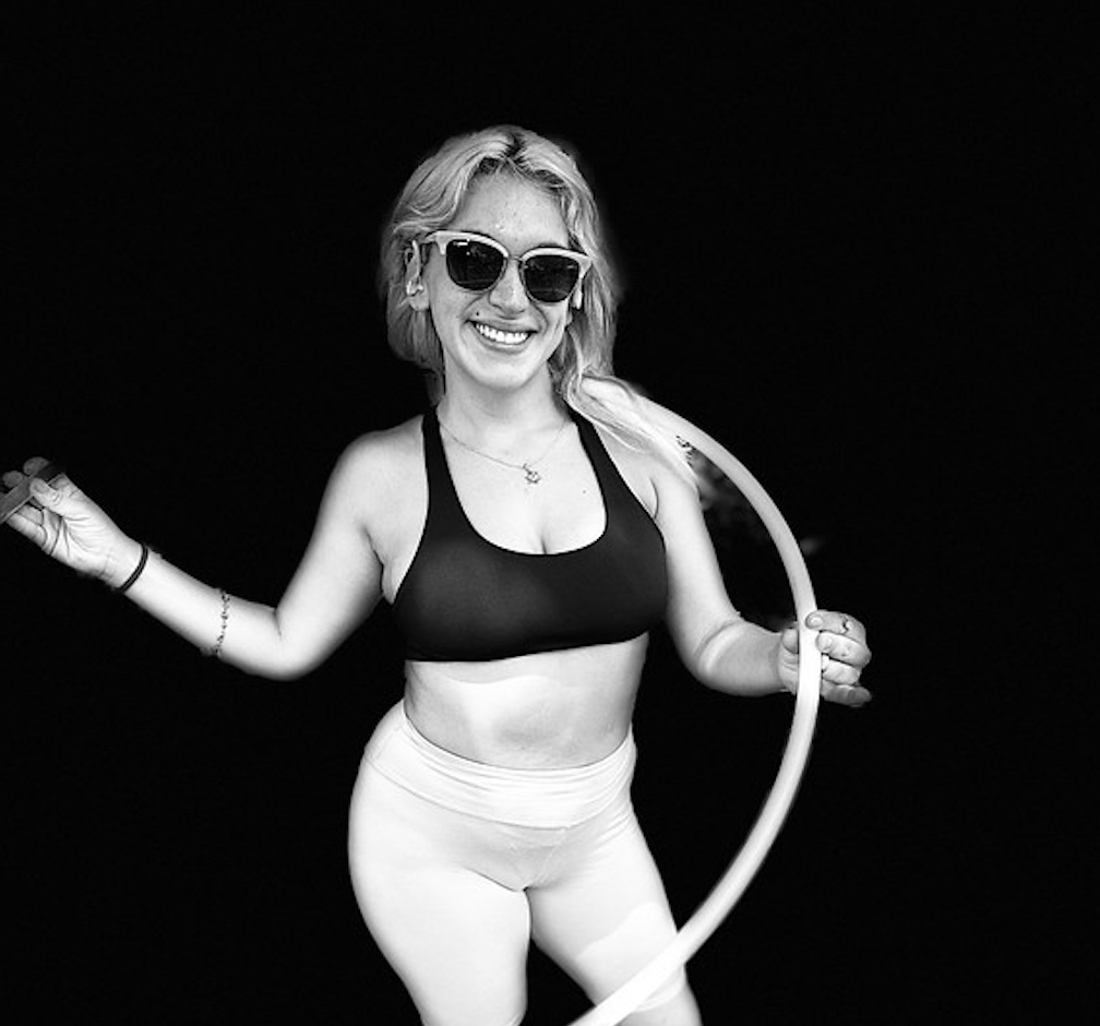 I think probably around three or four years ago. I was self-taught. I took a few hula hoop classes, but mostly self-taught. I took a few classes from the Philadelphia School of Circus Arts. I did some contortion classes there too — trapeze, silks.