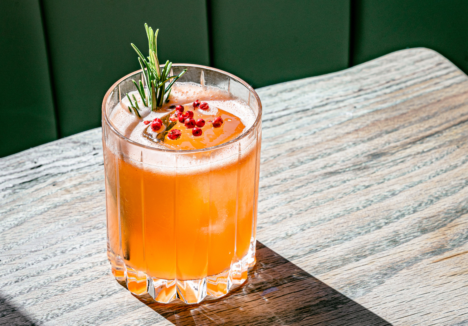 - Garnish with grated pink peppercorn and charred rosemary.