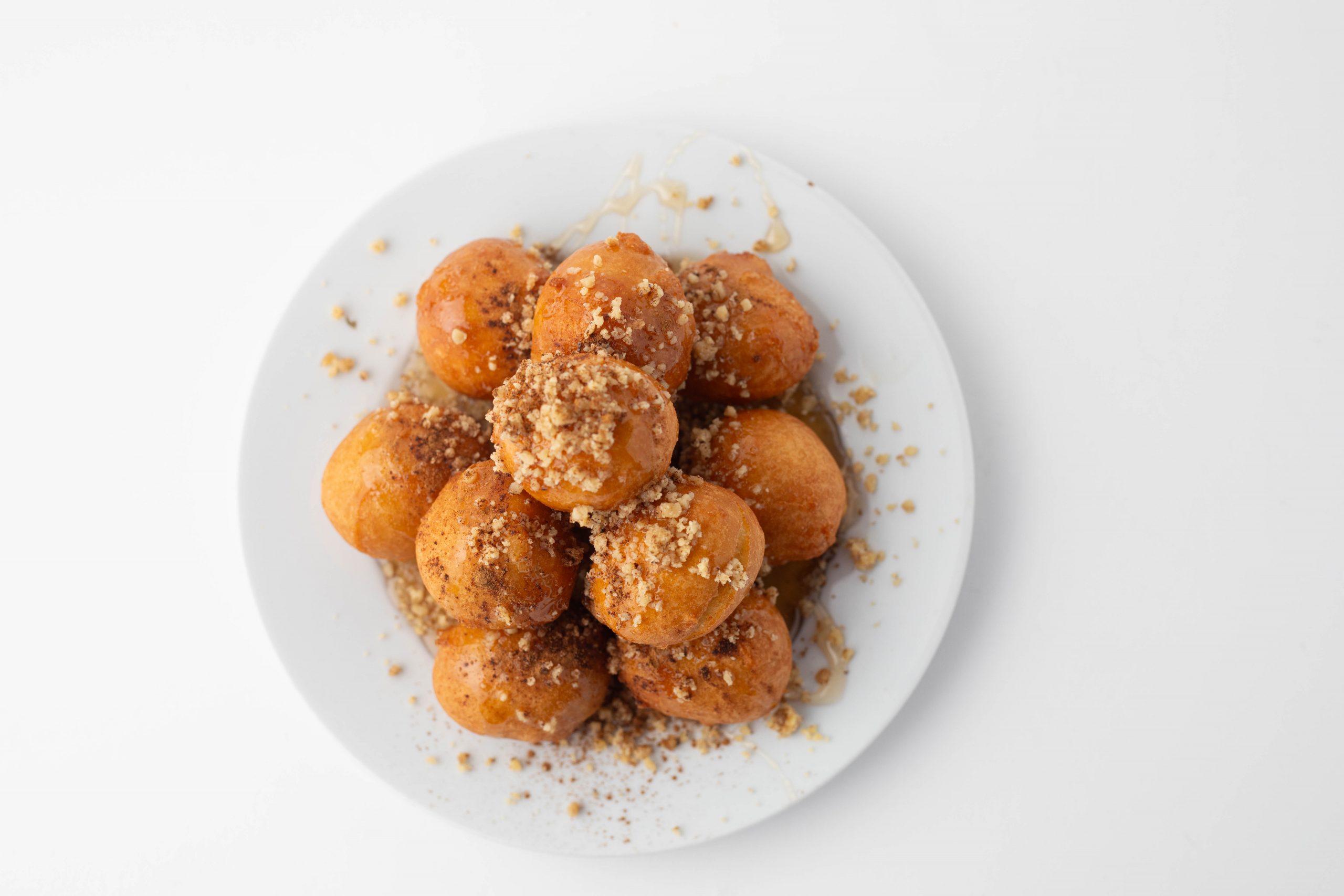 - Once the balls float to the top and have a toasted caramel look, they are cooked and ready. (Pita Grill recommends topping the balls with honey and crushed walnuts.)