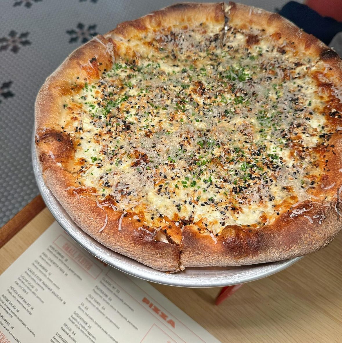 On Instagram, Stretch calls itself a New York-style pizzeria that “stretches far beyond the standards.” The menu includes classic pies, but is mostly made up of quirky reiterations like the Danny Boy with dan dan chicken, vodka sauce, spicy sesame, cilantro, and scallion, or the Nellie with roasted shallots, pickled shallots, and fried shallots.