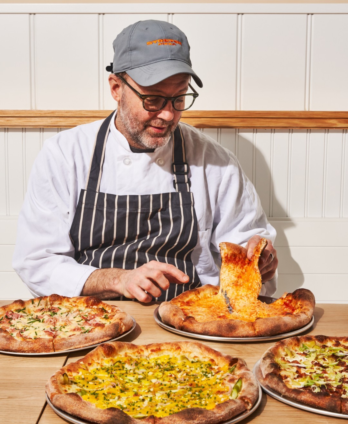 Chef Wylie Dufresne with some of his unique pies at Stretch. Photo: Stretch Pizza’s Instagram