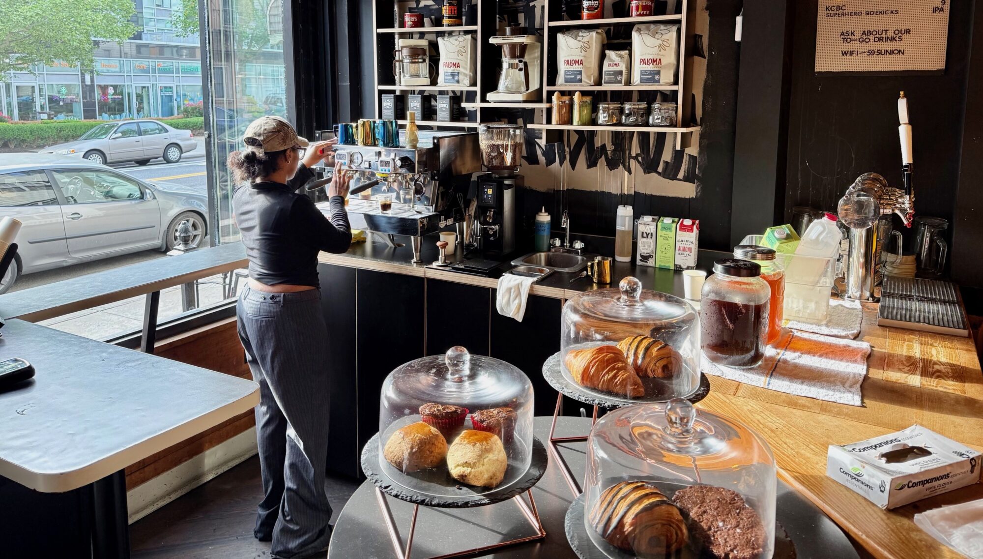 No Sleep Cafe serves coffee and pastries from popular Greenpoint coffee shop and bakery Paloma (163 Nassau Ave.) Monday through Friday from 7 a.m. to 4 p.m. and weekends from 8 a.m. to 2 p.m.