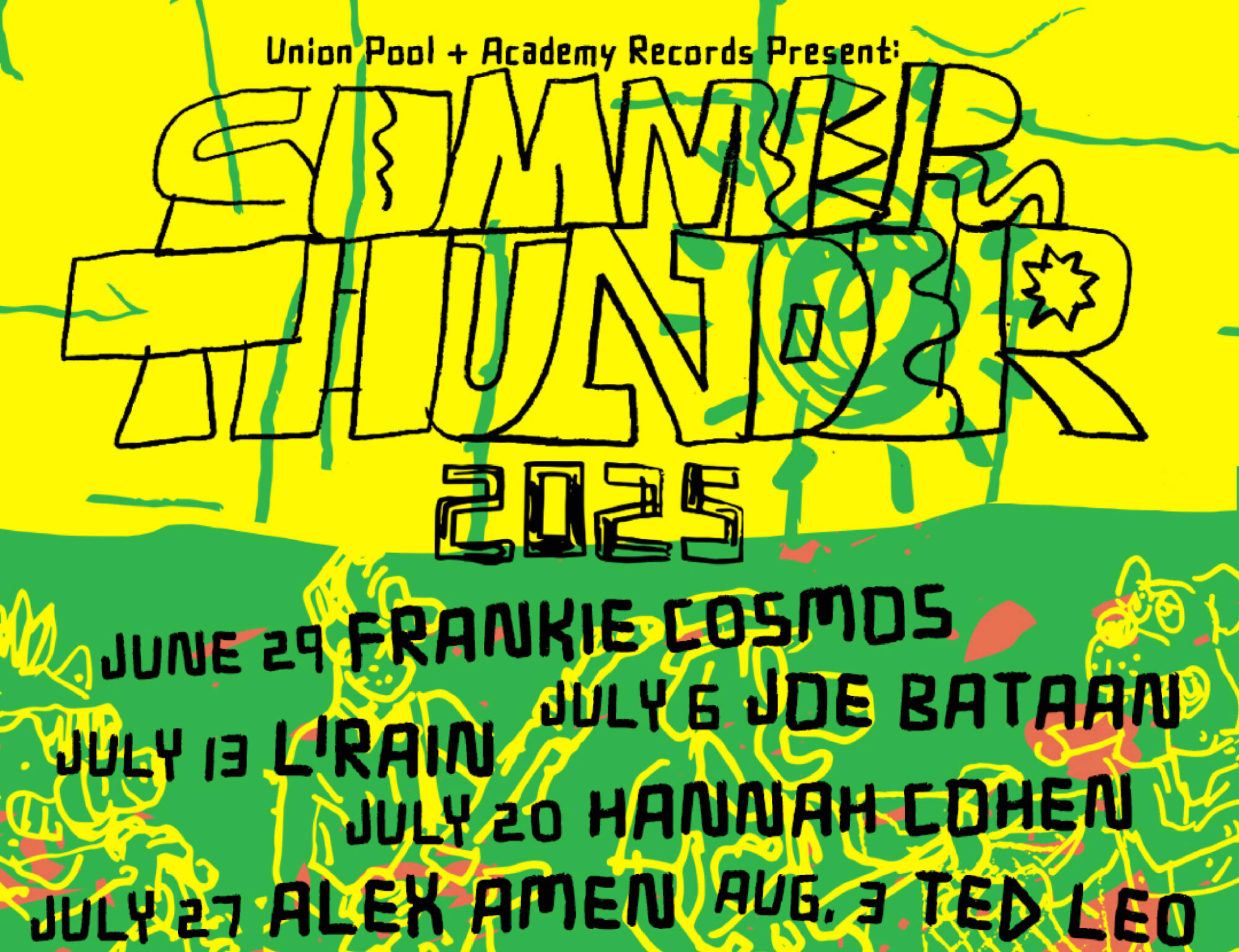 Union Pool (484 Union Ave.) just announced the lineup for its annual summer concert series, Summer Thunder. The free shows take place in the bar’s backyard area from June 29 through August 24.