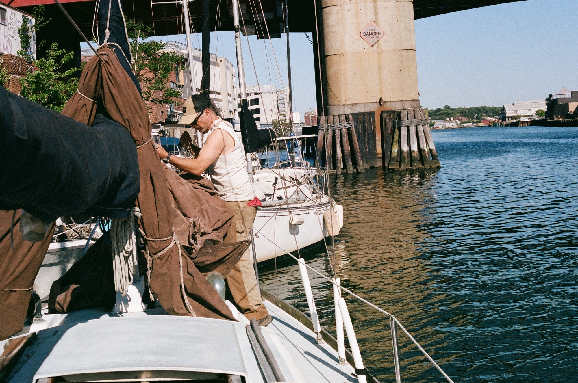 Even though dozens of people live in sailboats, Clark and Milioto are some of the only sailors on the creek. Being on the east side of the Pulaski Bridge means that the tide dictates most of Clark’s ventures off the creek. “I can only go under the bridge at low tide or a tiny bit higher,” she said, peering up her mast. “So whenever it’s high tide and I gotta leave, I set up an appointment [for a bridge opening] two hours in advance.”