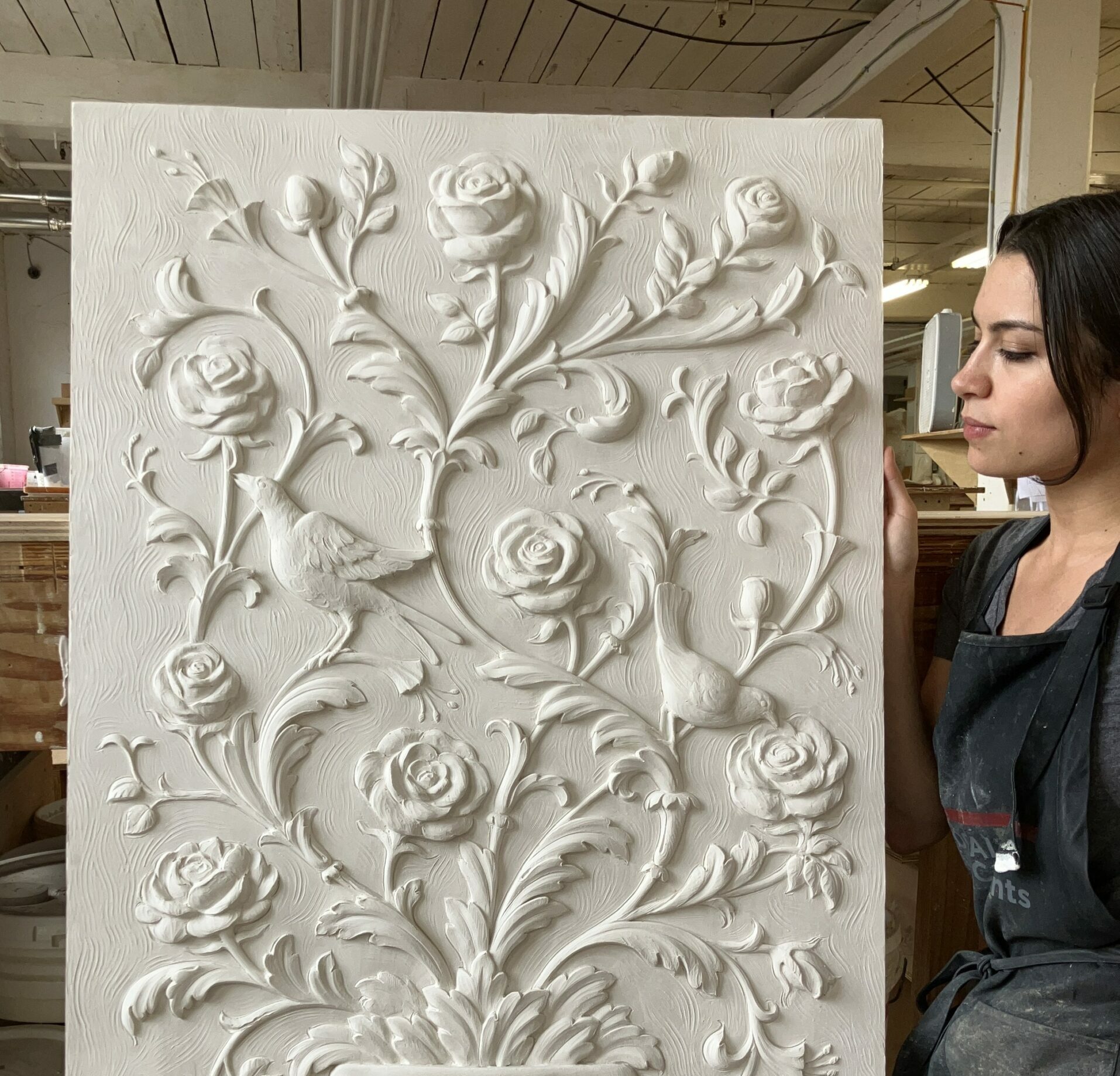 Each day in the studio brings something new. One day I’m sculpting rose flowers and branches for an ornate ceiling; the next, I’m constructing Corinthian capitals. I also have a hand in creating the graphite renderings for our shop drawings by studying images of historic ornament and working directly with designers. Aside from a quick glance at my email inbox in the morning, my days are screen-free. Time slips away when you’re fully immersed in the creative process.