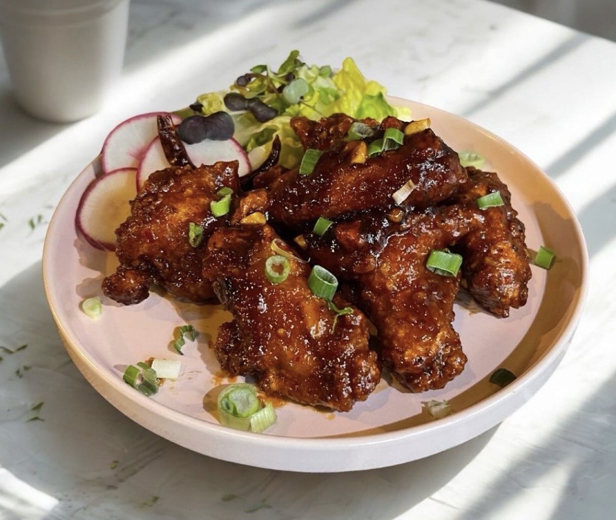 Finally, the menu offers a section of dishes “handpicked by the chef.” This includes Thai stir fry with minced chicken, bell pepper, basil, and fried egg or with crispy pork belly, Chinese broccoli, and fried egg. There’s also crab fried rice, crispy sesame chicken, and tamarind duck.