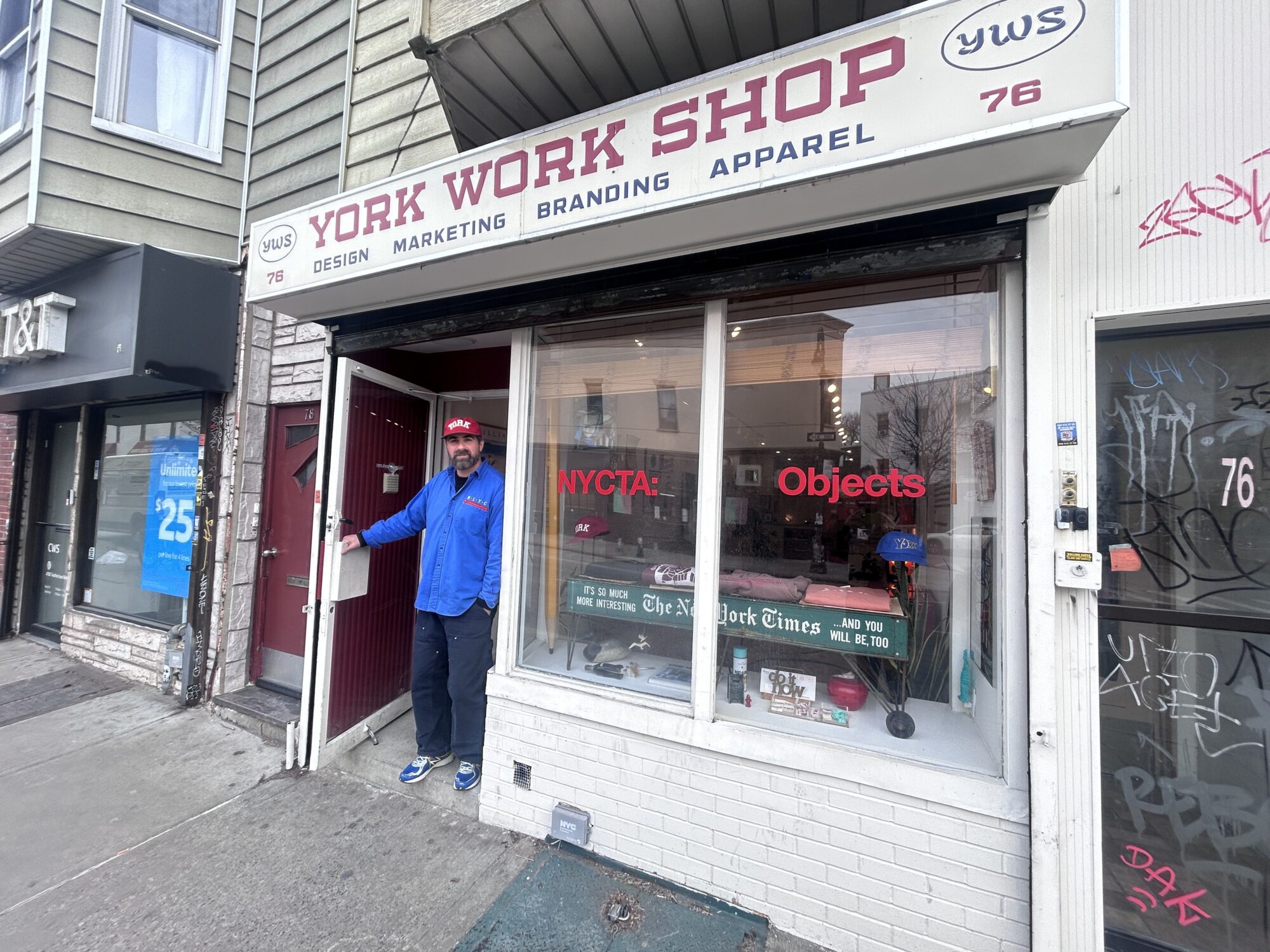 But today it’s home to York Work Shop, a design studio sprung from the Gordon brothers work at Belief and designing independent apparel, capsule commissions, and now art exhibitions.