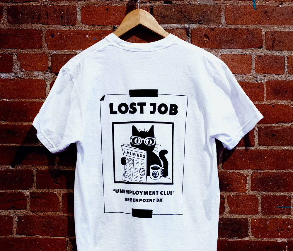 Unemployment Club will be selling t-shirts today, from 10 am to 2 pm at Stowaway (159 Greenpoint Ave.) and then 7 to 10 pm at Oak & Iron (147 Franklin St.)