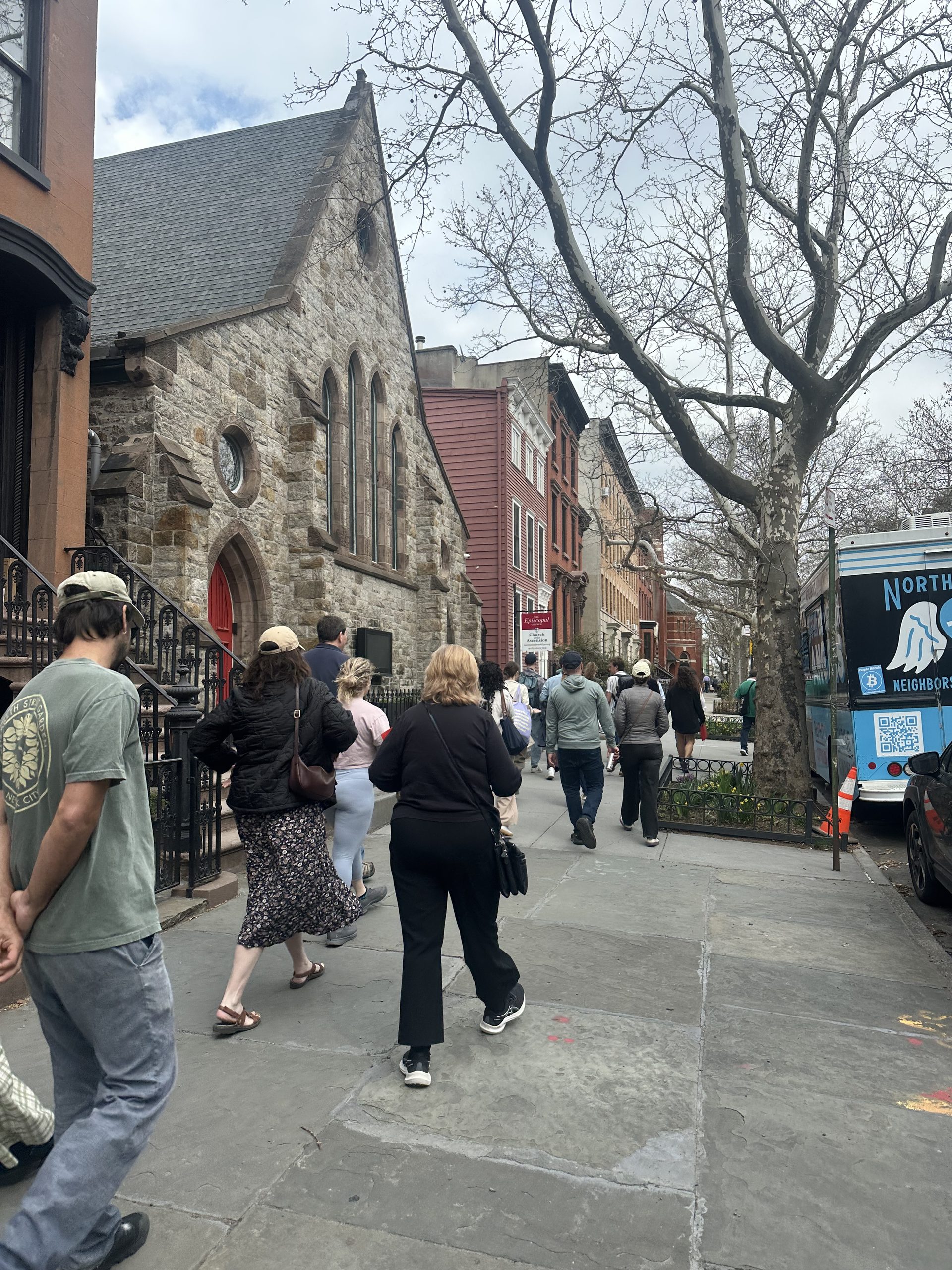 Geoffrey Cobb, a former high school history teacher, is no stranger to this as he has turned remembering into his calling. A resident of Greenpoint for over a quarter century, he continues to research and preserve the history of the neighborhood, sharing it with others on walking tours that he conducts throughout the year. On this day, the tour is focused on women’s history and he starts by saying, “Without you, there wouldn’t be any of us.” This statement rings true as soon as we meet our first historical woman, Mary Meserole. The daughter of Magdalena Meserole, she followed in her mother’s footsteps marrying a much older man (22 years her senior), Neziah Bliss. He’s considered the founder of Greenpoint, having developed the land, and I wonder if she smirks hearing that as his title, knowing her dowry of 31 waterfront acres was the soil that allowed Greenpoint to grow.